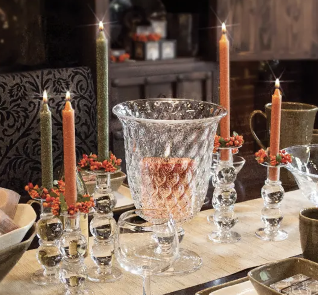 Root wax pillars and tapers make for fantastic additions to centerpieces, but can also be used throughout the house as great decorative pieces.